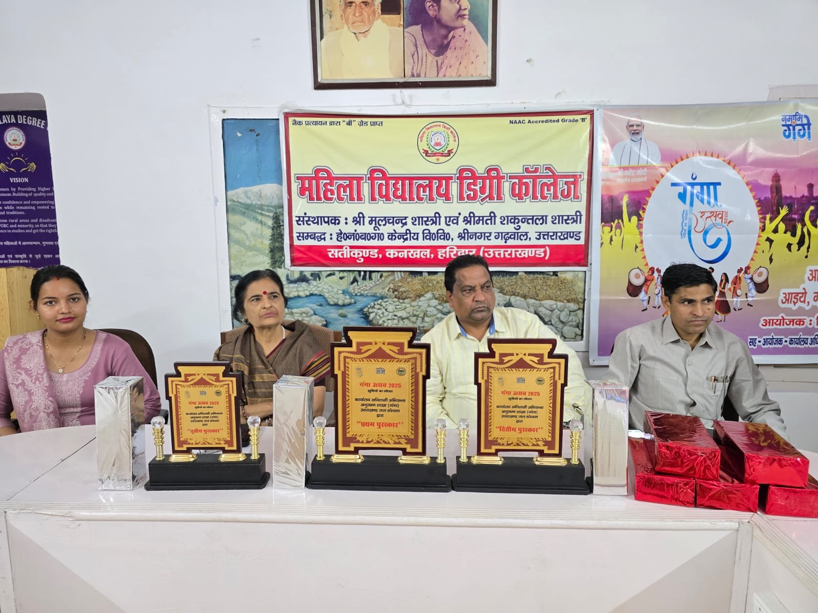 सान्तवना पुरस्कार जाहनवी बी०ए) प्रथम सेमेस्टर, नसरा बी०ए० प्रथम सेमेस्टर, सुषमा बी०ए० पंचम सेमेस्टर, सजना बी०ए० प्रथम सेमेस्टर, और कावेरी बी०ए० प्रथम सेमेस्टर को दिया गया। नमामि गंगे और उत्तराखंड जल संस्थान हरिदवार के सदस्यों ने कार्यकम के आयोजन में सहभागिता के लिए प्राचार्या एवं महाविद्यालय का आभार व्यक्त किया।