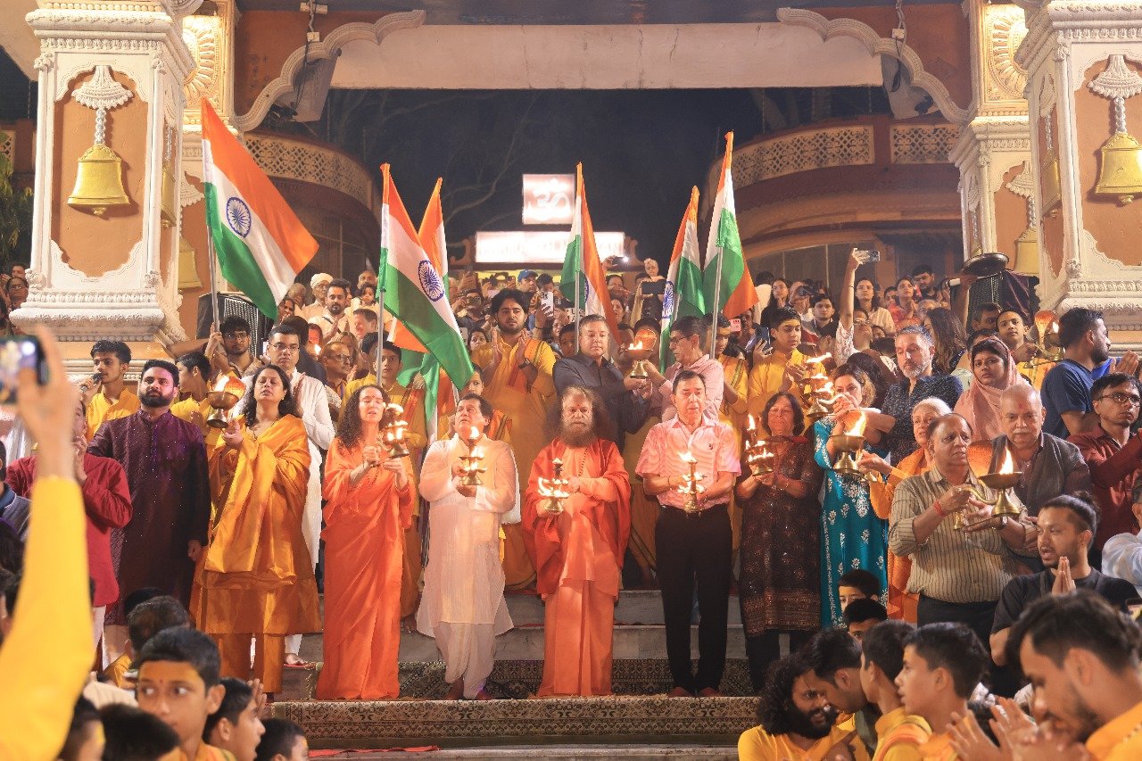 परमार्थ निकेतन में आज की आरती विशेष रूप से भारतीय महिला क्रिकेट टीम की जीत को समर्पित की। “भारत माता की जय” के नारों से वातावरण गुंजायमान हो उठा। दीपों की रोशनी, तिरंगे का तेज और गंगा की लहरें यह दृश्य हर हृदय में रोमांच कर देने वाला था।
