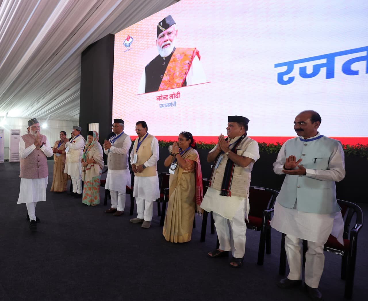 मुख्यमंत्री श्री पुष्कर सिंह धामी ने राज्य स्थापना दिवस रजत जयंती पर्व की बधाई देने के साथ ही प्रधानमंत्री श्री नरेंद्र मोदी जी का स्वागत करते हुए कहा कि ये हम सभी उत्तराखंडवासियों का सौभाग्य है कि इस ऐतिहासिक अवसर पर हमें यशस्वी प्रधानमंत्री जी का सान्निध्य प्राप्त हो रहा है।