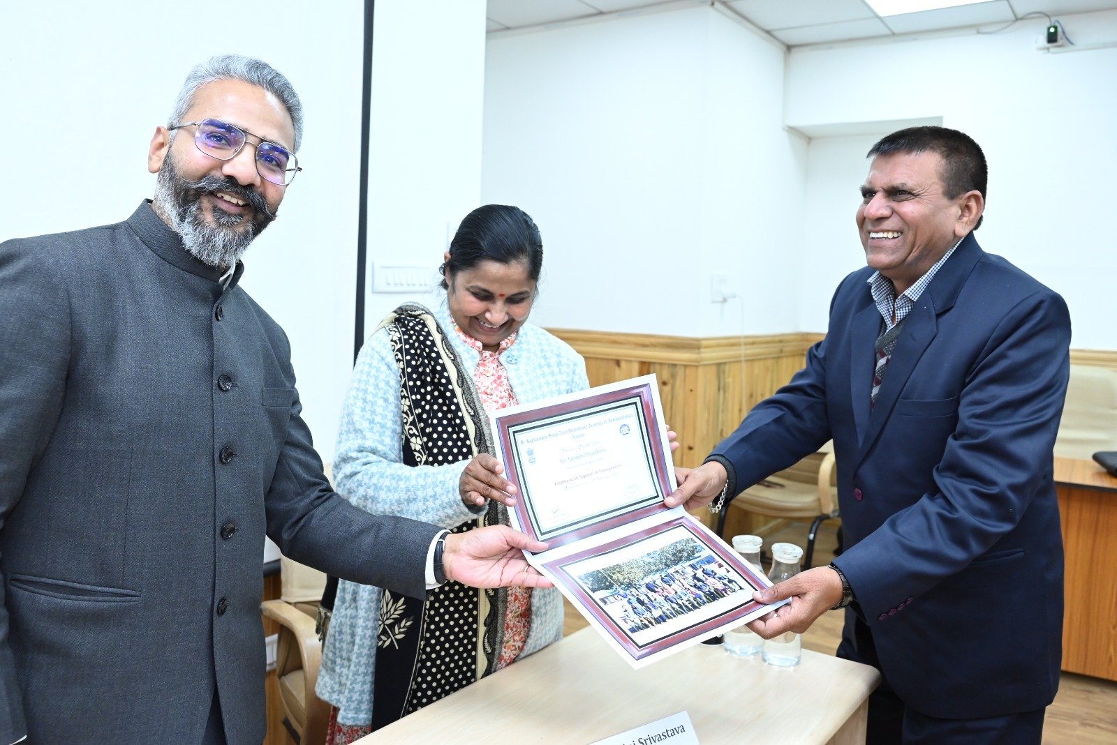 उत्तराखण्ड आयुर्वेद विश्वविद्यालय के कुलपति प्रो. डॉ. अरूण त्रिपाठी एवं कुलसचिव नरेन्द्र सिंह ने कहा कि डॉ. नरेश चौधरी अपने मूल दायित्वों के निर्वहन के साथ आपदाओं में भी समर्पित जन समाज सेवा के लिये हमेशा अग्रणीय रहते हुए अधिक से अधिक कार्यशालाओं, सेमिनार से जो ज्ञान प्राप्त करते हैं उक्त ज्ञान का सीधा लाभ अपने अनुभवों के साथ जन प्रचार- प्रसार के माध्यम से जरुरतबन्दों को तो देते ही हैं साथ ही साथ विश्वविद्यालयों के संकाय सदस्यों, अधिकारियों, कर्मचारियों एवं छात्र-छात्राओं को भी ज्ञान प्राप्त होता है। कार्यशाला में एसडीआरएफ, शिक्षा, चिकित्सा, सामाजिक, स्वंयसेवी संस्थाओं के विभिन्न जनपदों के स्वंयसेवकों एवं प्रतिनिधियों द्वारा विशेष प्रतिभाग किया गया। उत्तराखण्ड प्रशासन अकादमी के आपदा प्रकोष्ठ प्रभारी डॉ. ओमप्रकाश, कोर्स निदेशक मंजू पाण्डे, रिकोर्स पर्सन कॉर्डियोलोजिस्ट डॉ. सुधाश सिंह, डॉ. मालिनी श्रीवास्तव, डॉ. मधुलता नयाल, अजहर राशिदी ने भी डॉ. नरेश चौधरी को प्रमाण पत्र देकर बधाई देते हुए उनके द्वारा आपदाओं में किये गये कार्यों की सराहना की।