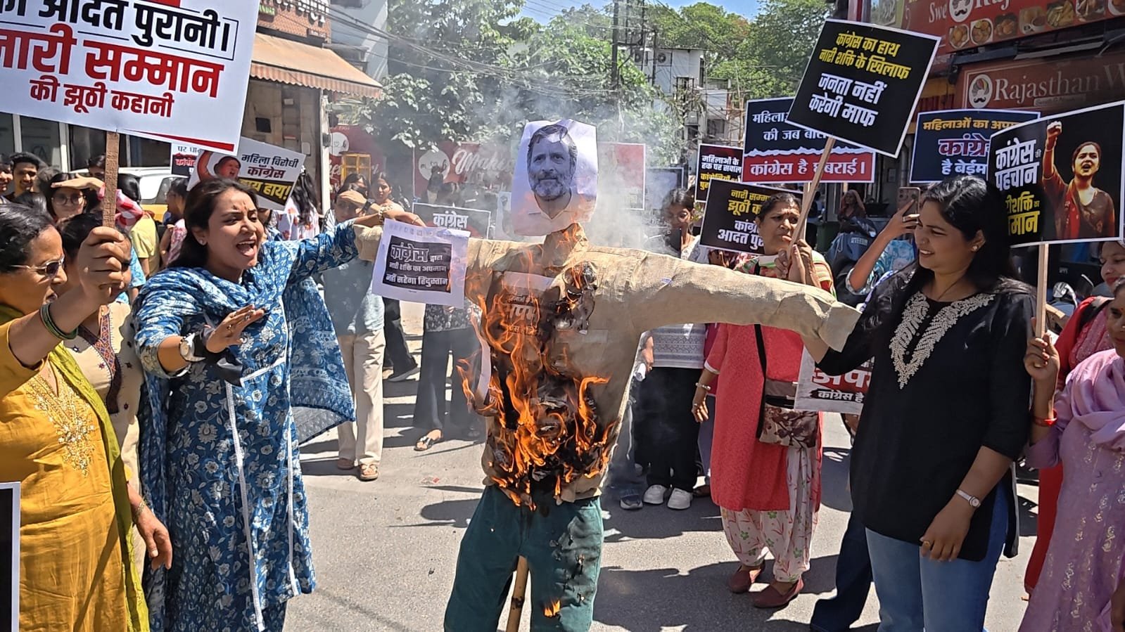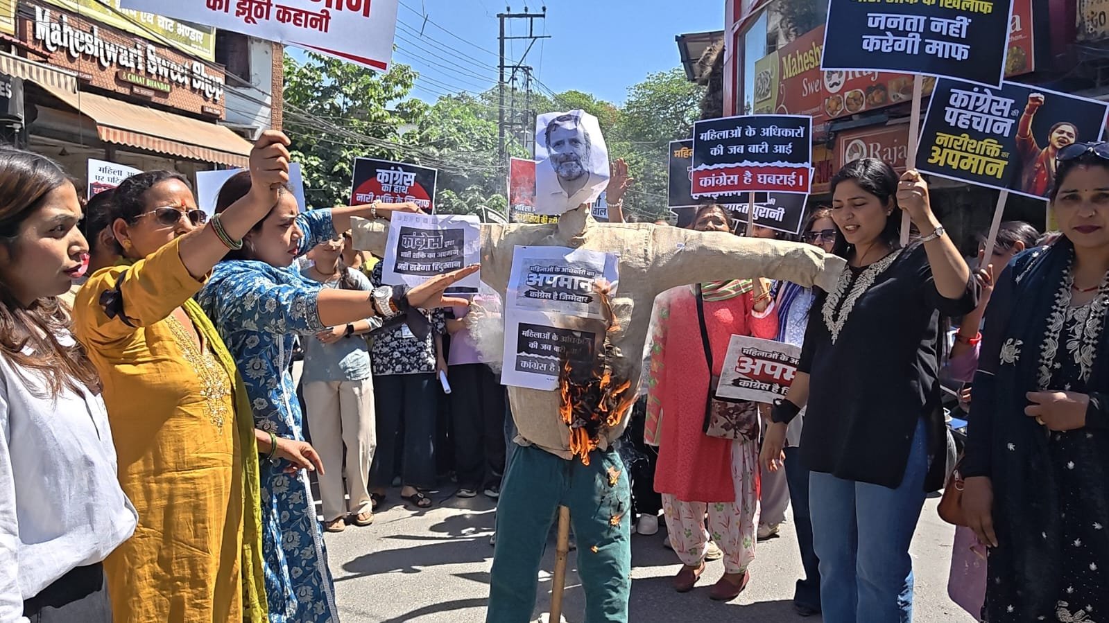 प्रदर्शन के दौरान बड़ी संख्या में मातृशक्ति एवं बहनें उपस्थित रहीं। उन्होंने कांग्रेस पार्टी एवं राहुल गांधी के खिलाफ जमकर नारेबाजी की तथा उनका पुतला दहन कर अपना आक्रोश व्यक्त किया।