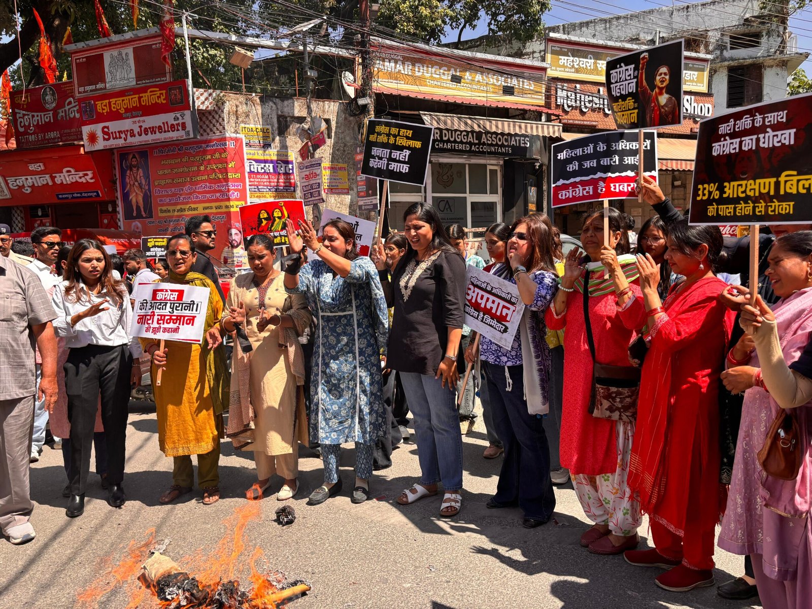 नारी शक्ति वंदन अधिनियम का विरोध करने वाले विपक्ष के खिलाफ डीएवी कॉलेज चौक पर महिलाओं का विरोध प्रदर्शन