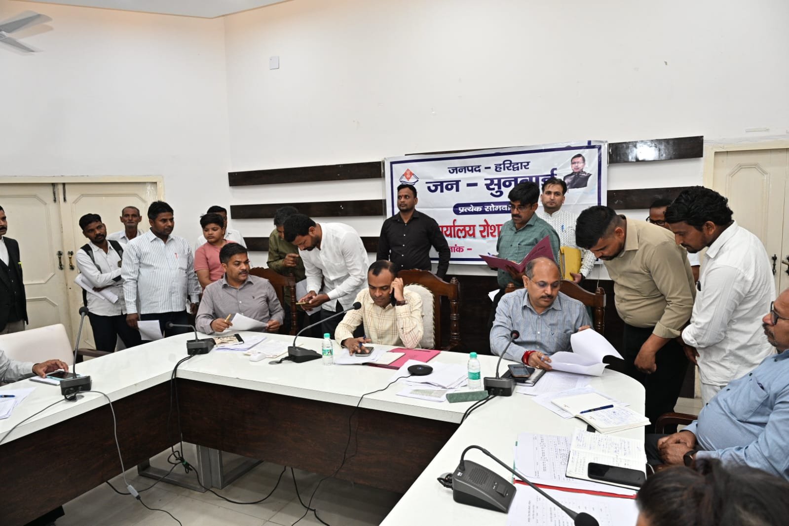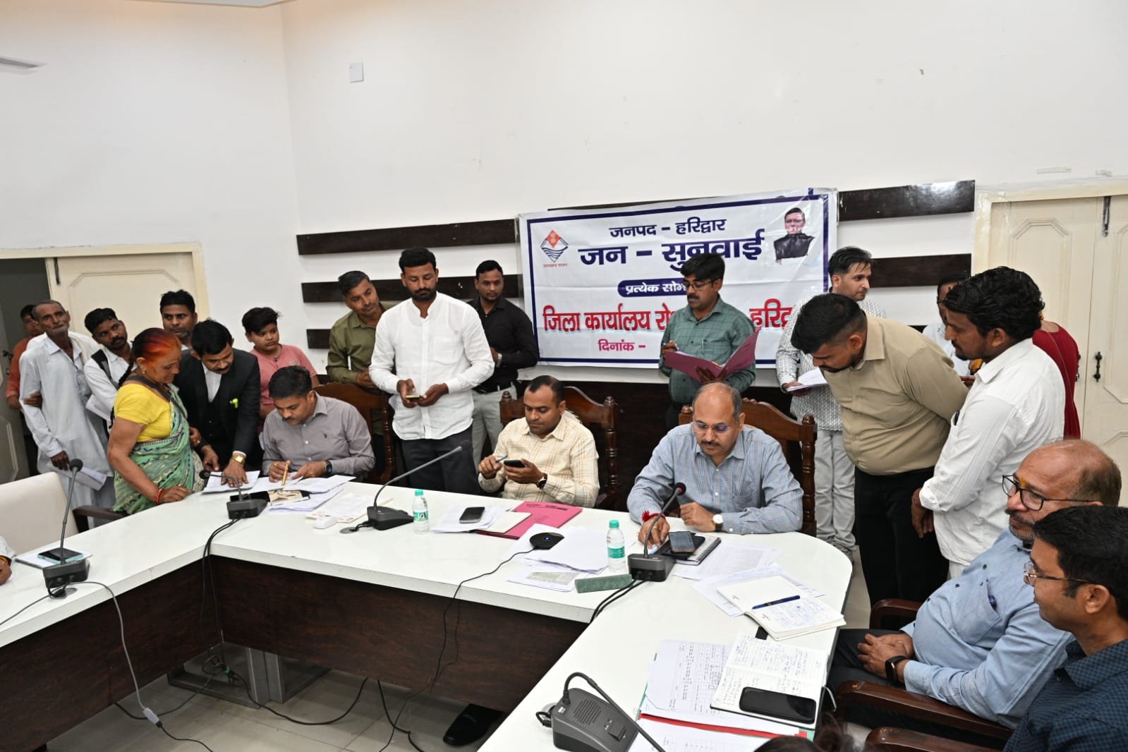 हरिद्वार।   जनपदवासियों की समस्याओं का त्वरित निराकरण करने के उद्देश्य से जिलाधिकारी मयूर दीक्षित की अध्यक्षता में जिला कार्यालय सभागार में जन सुनवाई कार्यक्रम आयोजित किया गया, जिसमें विभिन्न विभागों से संबंधित 61 शिकायते/ समस्याएं दर्ज कराई गई जिसमें से 35 समस्याओं का मौके पर निराकरण किया गया शेष समस्याओं को निस्तारण हेतु संबंधित विभागों को प्रेषित किया गया।
