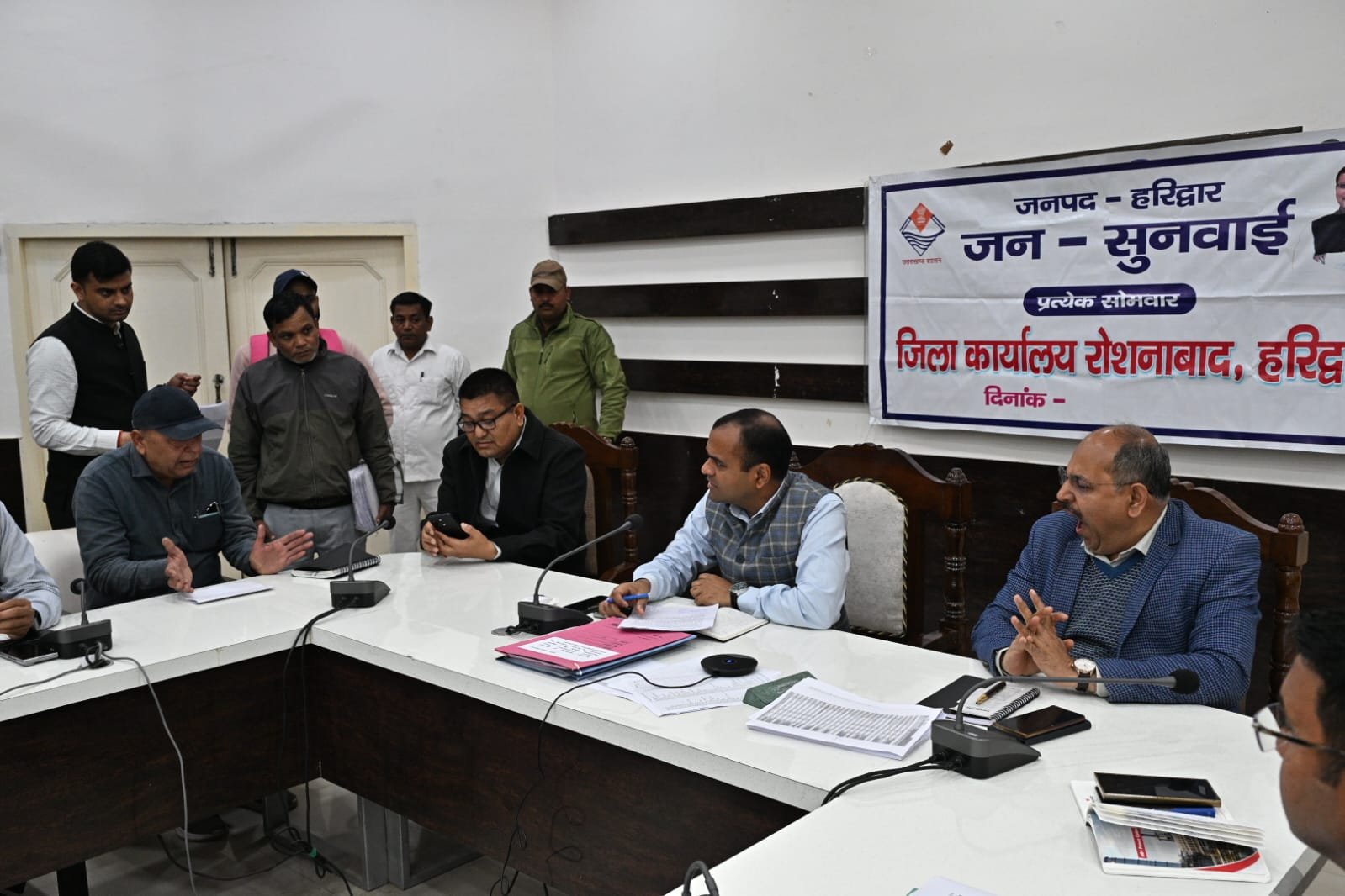 बैठक मे मुख्य विकास अधिकारी ललित नारायण मिश्रा,अपर जिलाधिकारी दीपेंद्र सिंह नेगी,मुख्य चिकित्सा अधिकारी आर के सिंह, जिला विकास अधिकारी वेद प्रकाश,उप जिलाधिकारी जितेंद्र कुमार, जिला पंचायतराज अधिकारी अतुल प्रताप सिंह,मुख्य कोषाधिकारी अजय कुमार, जिला पर्यटन अधिकारी सुशील नौटियाल,अधिशासी अभियंता यूपीसीएल दीपक सैनी,जिला अर्थ संख्या आधिकारी नलिनी ध्यानी, जिला प्रोविजन अधिकारी अविनाश भदौरिया,जिला क्रीड़ा अधिकारी शबाली गुरूंग, एआरटीओ निखिल शर्मा सहित जिला स्तरीय सम्बन्धित अधिकारी एवं विभिन्न क्षेत्रों से आए फरियादी मौजूद रहे।