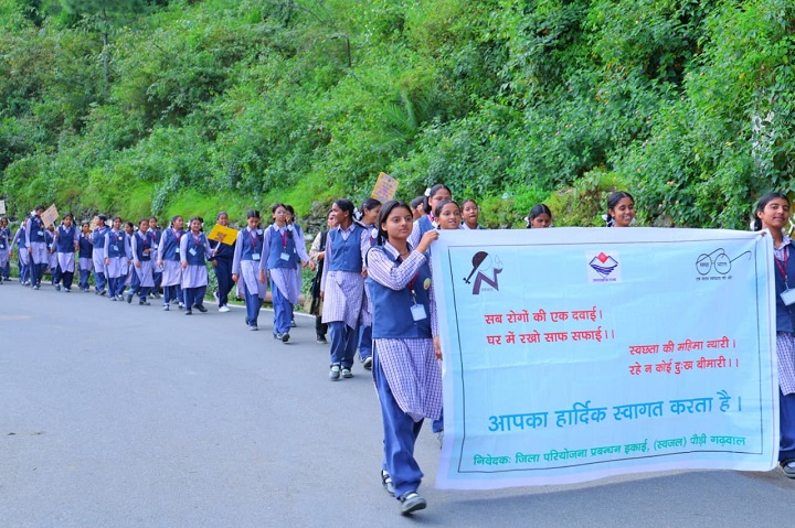 स्वच्छता ही सेवा पखवाड़े के अंतर्गत आज जनपद मुख्यालय पौड़ी में कंडोलिया मैदान से रामलीला मैदान तक स्वच्छता रैली का आयोजन उत्साहपूर्ण माहौल में किया गया। प्रातः 10 बजे कंडोलिया मैदान में स्कूली छात्र-छात्राओं, अधिकारी-कर्मचारियों एवं जनप्रतिनिधियों ने एक विशाल मानव श्रृंखला बनाकर स्वच्छता का संदेश दिया।