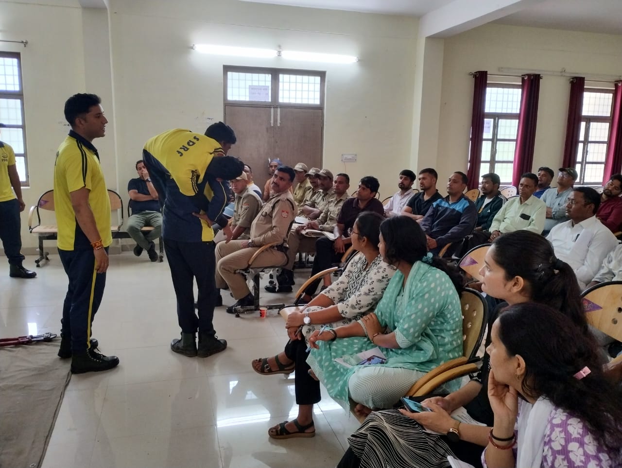 इस दौरान एसडीआरएफ टीम ने प्रतिभागियों को आपदा की स्थिति में उपलब्ध संसाधनों का उपयोग कर अस्थायी संरचना तैयार करने और राहत कार्यों की व्यावहारिक जानकारी दी।