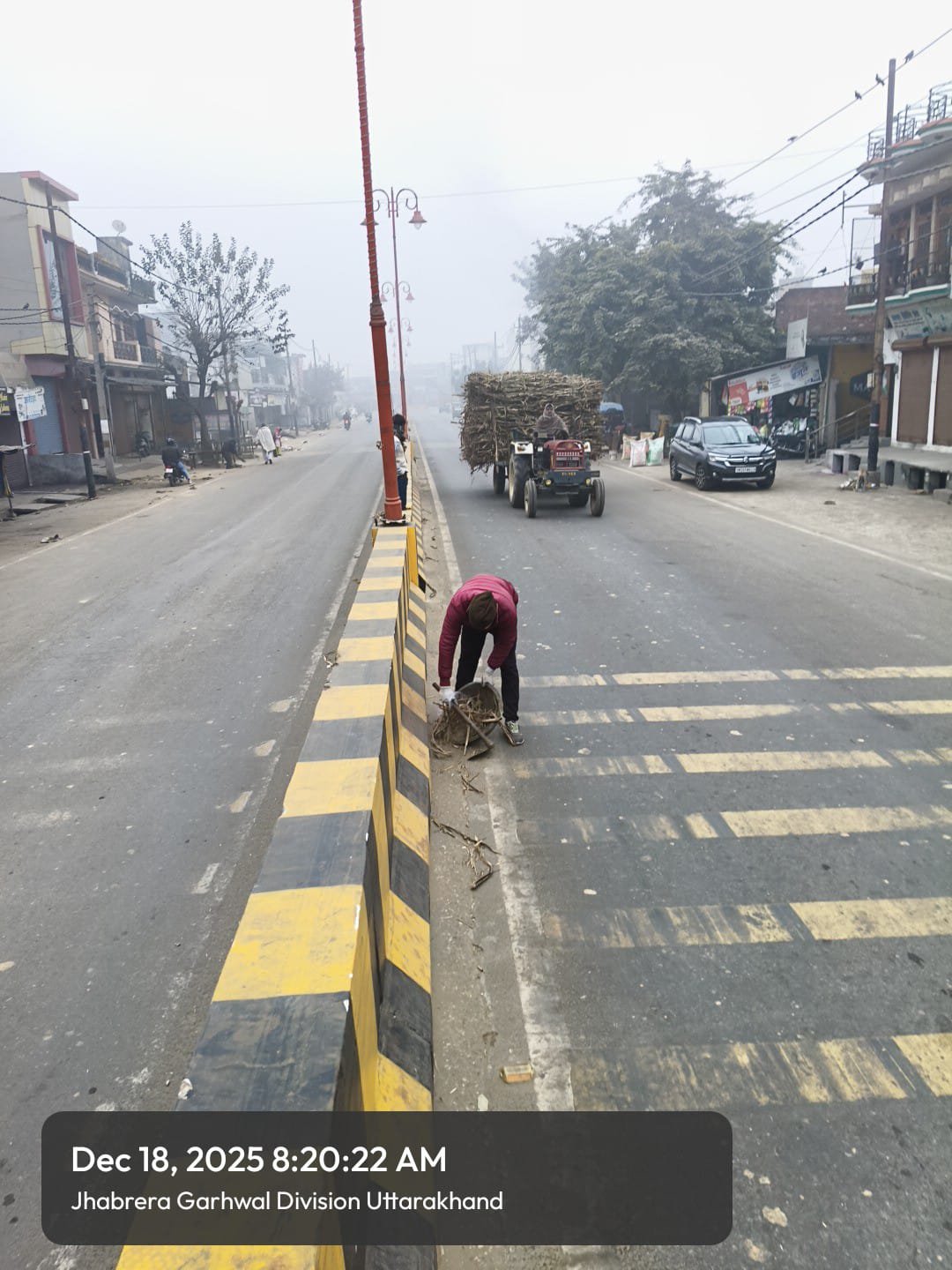 अधिशासी अभियंता पीडब्ल्यूडी विपुल सैनी ने अवगत कराया है कि कोर कॉलेज के पास ओल्ड एन एच 58 से रुड़की की ओर सड़क किनारे की झाड़ी कटान एवं साफ सफाई का कार्य किया जा रहा है इसके साथ ही सड़क किनारे किए गए अतिक्रमण को भी हटाया जा रहा है एवं घने कोहरे के कारण कोई सड़क दुर्घटना गठित न हो इसके लिए सफेद पट्टी लगाए जाने का भी कार्य किया जा रहा है।