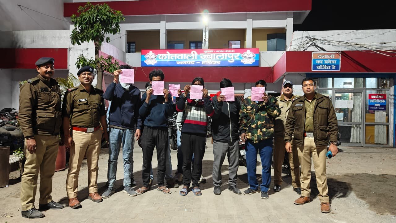 उपरोक्त क्रम में सोमवार को कोतवाली ज्वालापुर पुलिस द्वारा प्रभारी निरीक्षक कुंदन सिंह राणा के नेतृत्व में अलग अलग टीमें बनाकर सार्वजनिक स्थानों/सब्जी मंडी, गंगनहर पटरी व सडक किनारे शराब पीकर हुडदंग मचाने वाले 22 व्यक्तियों को पकड़ कर उनके विरूद्द 81 पुलिस एक्ट के अन्तर्गत चालानी कार्रवाई कर रूपए 5500/- संयोजन शुल्क वसूल किया गया।