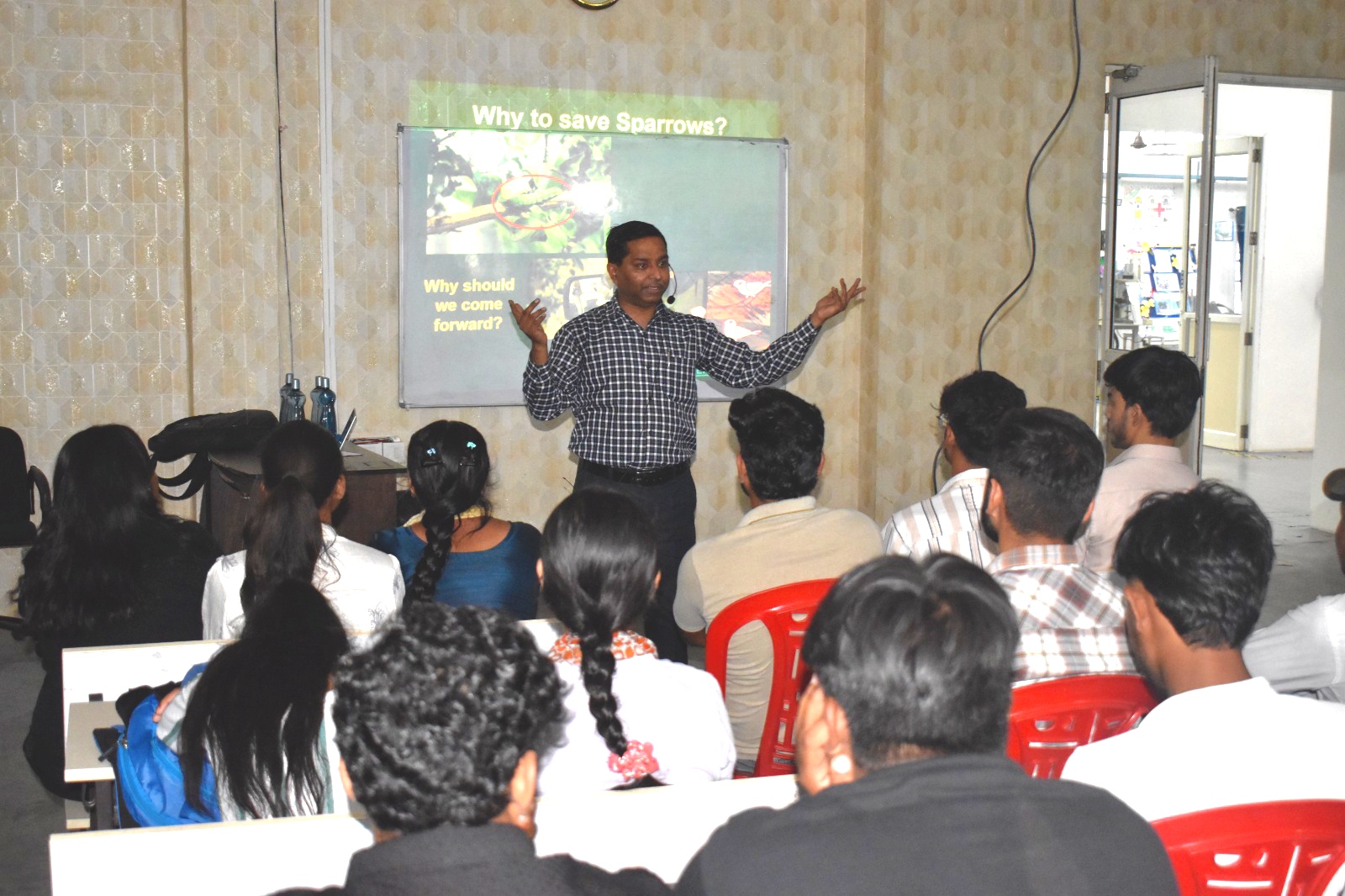 डॉ. सेठी ने पावरप्वाइंट प्रेजेंटेशन के माध्यम से प्रतिभागियों के साथ गौरैया पक्षी के जीवन के विभिन्न पहलुओं पर चर्चा की। उन्होंने कहा कि आज गौरैया को घोंसला बनाने के लिए सुरक्षित स्थान उपलब्ध नहीं हो पा रहे हैं। लकड़ी के कृत्रिम घोसला लगाकर इस समस्या का समाधान संभव है। उन्होंने प्रतिभागियों के साथ घोंसला लगाने के संबंध में आवश्यक दिशा निर्देशों पर भी विस्तृत चर्चा की।