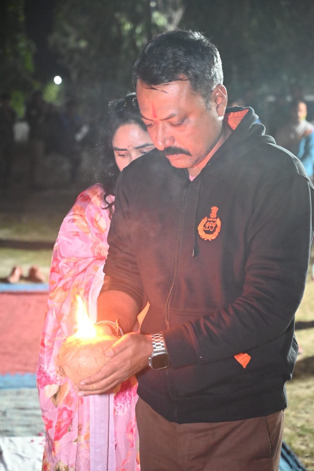 आज होलिका दहन के शुभ मुहूर्त पर एसएसपी नवनीत सिंह भुल्लर द्वारा पुलिस लाइन रोशनाबाद के मां दुर्गा मंदिर प्रांगण में समस्त पुलिस परिवार के साथ विधि विधान से पूजा अर्चना उपरांत हर्षोल्लास के माहौल में होलिका दहन किया गया।