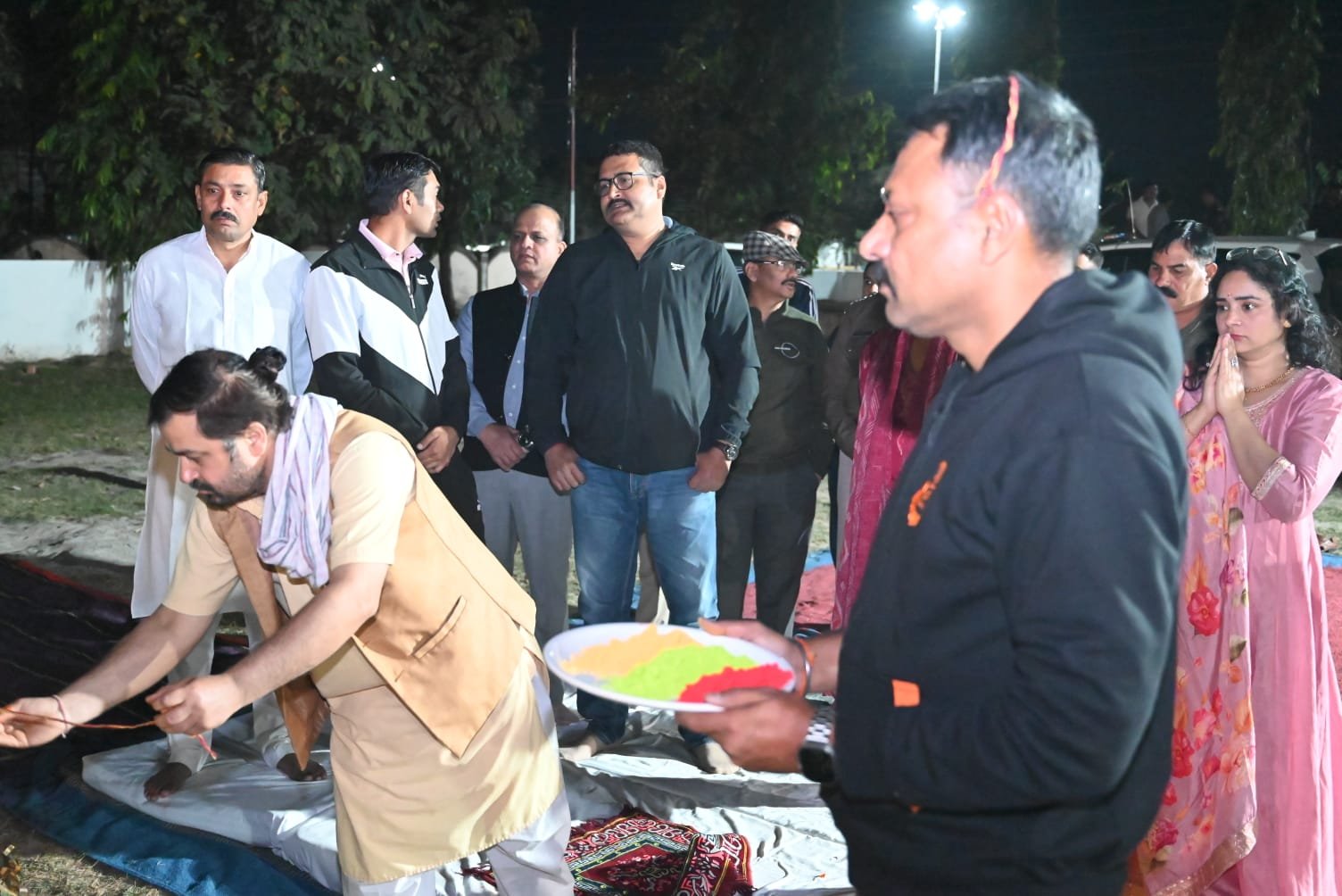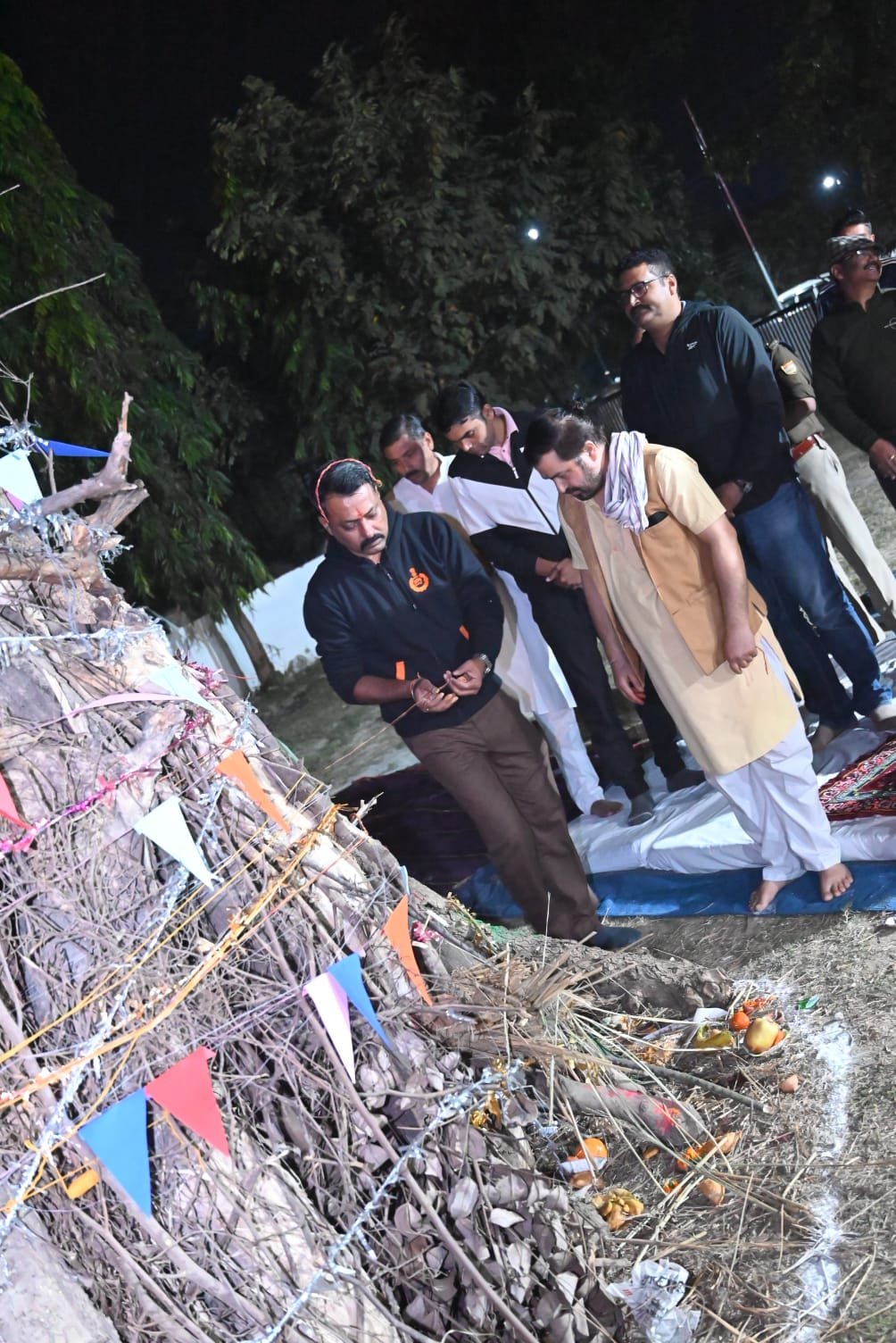 आज होलिका दहन के शुभ मुहूर्त पर एसएसपी नवनीत सिंह भुल्लर द्वारा पुलिस लाइन रोशनाबाद के मां दुर्गा मंदिर प्रांगण में समस्त पुलिस परिवार के साथ विधि विधान से पूजा अर्चना उपरांत हर्षोल्लास के माहौल में होलिका दहन किया गया।