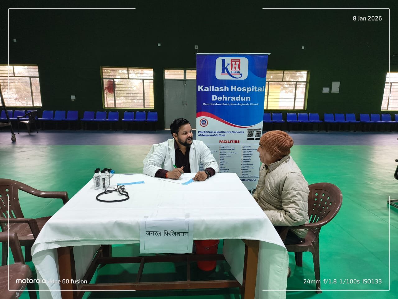 *कैलाश हॉस्पिटल देहरादून के विशेषज्ञ डॉक्टरों द्वारा हृदय, शुगर, बीपी व ईसीजी जाँच कर दिया गया स्वास्थ्य परामर्श*