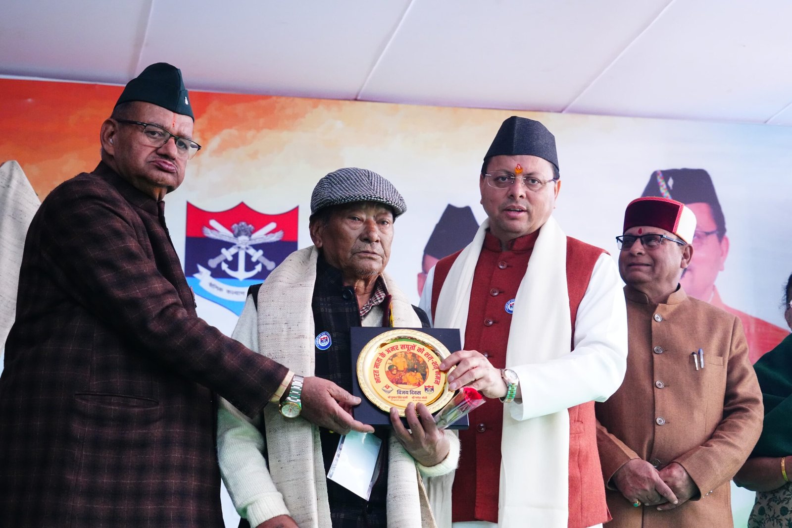 मुख्यमंत्री श्री पुष्कर सिंह धामी ने मंगलवार को विजय दिवस के अवसर पर गांधी पार्क, देहरादून में आयोजित श्रद्धांजलि एवं सम्मान समारोह कार्यक्रम में प्रतिभाग करते हुए शहीद स्मारक पर पुष्पचक्र अर्पित कर वीर बलिदानियों को श्रद्धांजलि दी। इस अवसर पर उन्होंने 1971 के युद्ध के सैनिकों और शहीदों के परिजनों को सम्मानित भी किया। कार्यक्रम में मुख्यमंत्री ने घोषणा की कि सैनिक कल्याण निदेशालय और जिला सैनिक कल्याण कार्यालय (डीडीहाट, हरबर्टपुर, पिथौरागढ़ एवं हरिद्वार) इन सभी पाँच कार्यालयों में सरकारी वाहन दिए जाएंगे।
