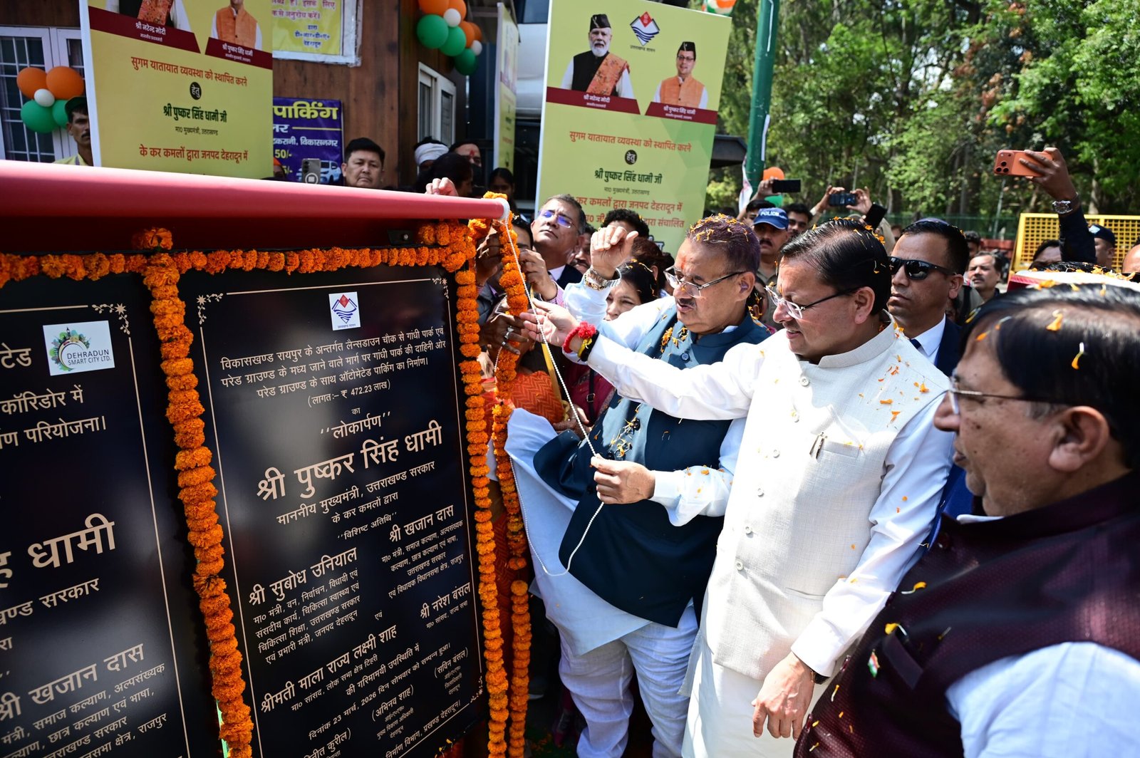 मुख्यमंत्री श्री पुष्कर सिंह धामी ने सोमवार को परेड ग्राउंड, देहरादून में आयोजित “जन-जन की सरकार चार साल बेमिसाल, उत्तरोत्तर प्रगति पथ पर अग्रसर उत्तराखण्ड’ कार्यक्रम में प्रतिभाग करते हुए *₹ 401.86 करोड़ की लागत से कुल 74 विकास योजना का लोकार्पण एवं शिलान्यास किया।* जिसमें *₹ 99.44 करोड़ की 33 योजनाओं का शिलान्यास एवं ₹ 302.42 करोड़ की 41 विकास योजनाओं का लोकार्पण शामिल है।*
