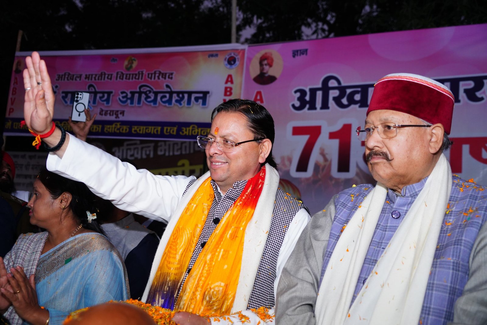 मुख्यमंत्री श्री पुष्कर सिंह धामी ने आज गांधी पार्क, देहरादून में अखिल भारतीय विद्यार्थी परिषद (ABVP) के 71वें राष्ट्रीय अधिवेशन में देशभर से देहरादून पहुंचे प्रतिनिधियों एवं कार्यकर्ताओं का स्वागत किया |