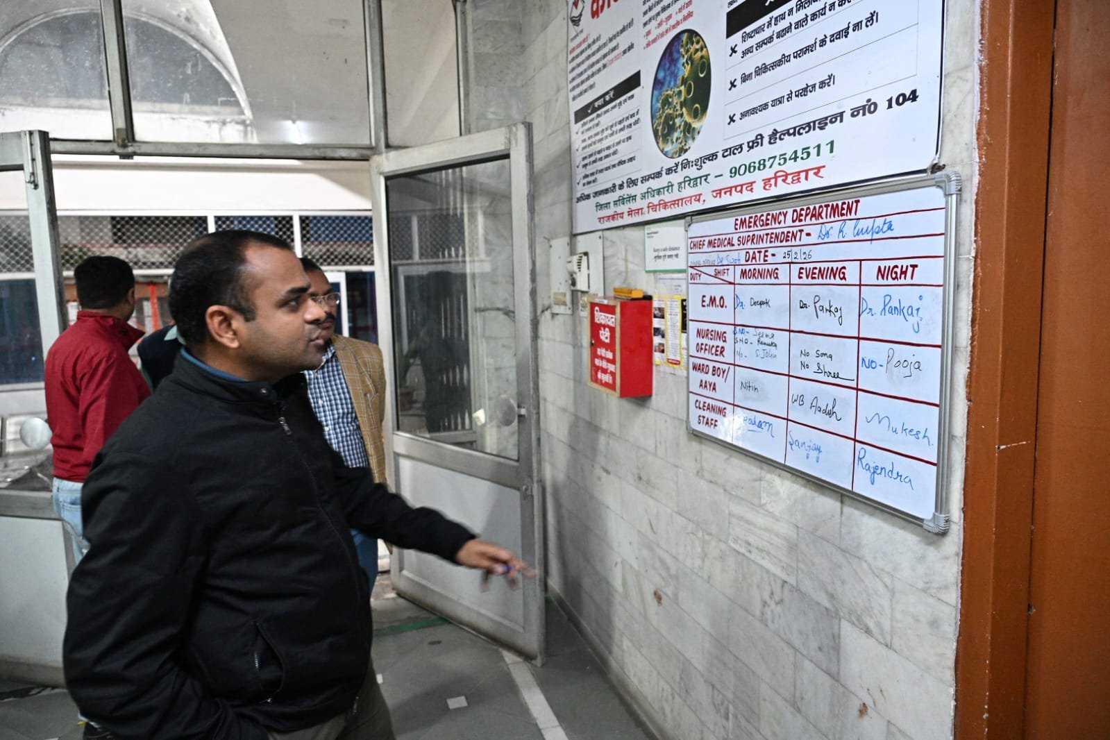 *हरिद्वार ।   जनपद के चिकित्सालयों में आने वाले मरीजों को बेहतर से बेहतर स्वास्थ्य सुविधाएं उपलब्ध हो एवं ड्यूटी पर तैनात डॉक्टर एवं कर्मचारी अपने दायित्वों का निर्वाहन ठीक ढंग से कर रहे है कि नहीं इसके लिए जिलाधिकारी मयूर दीक्षित ने देर रात्रि को उप जिला मेला चिकित्सालय एवं जिला महिला चिकित्सालय पहुंचकर मरीजों को उपलब्ध कराई जा रही स्वास्थ्य सुविधाओं का निरीक्षण कर जायजा लिया।