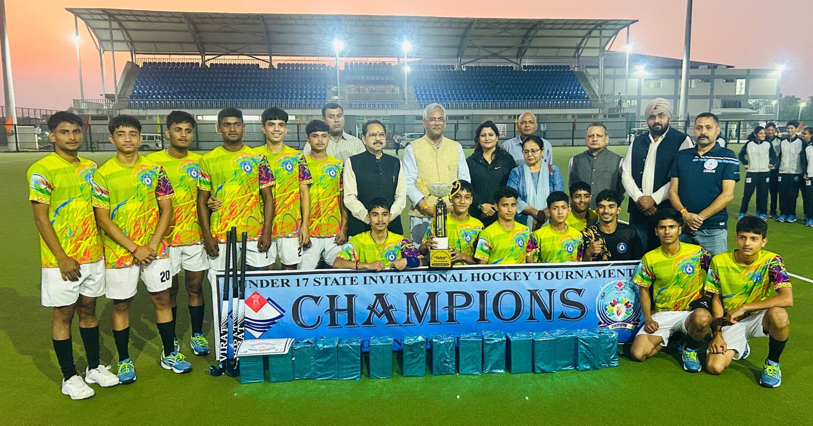 हरिद्वार । खेल निदेशालय उत्तराखण्ड के तत्वावधान एवं जिला खेल कार्यालय, हरिद्वार द्वारा राज्य स्थापना दिवस की 25वीं जयंती (रजत जयंती वर्ष) के अवसर पर चार दिवसीय अण्डर-17 आयु वर्ग के बालको की राज्य स्तरीय आमंत्रण हॉकी प्रतियोगिता का समापन आज दिनांक 08 नवम्बर, 2025 को वंदना कटारिया हॉकी स्टेडियम, योगस्थली खेल परिसर, रोशनाबाद हरिद्वार में किया गया। प्रतियोगिता का समापन एवं पुरस्कार वितरण मुख्य अतिथि श्री त्रिवेन्द्र सिंह रावत मा. सांसद लोकसभा क्षेत्र हरिद्वार विशिष्ट अतिथि श्री आदेश चौहान मा. विधायक विधान सभा क्षेत्र रानीपुर हरिद्वार द्वारा किया गया। चार दिवसीय हॉकी प्रतियोगिता में उत्तराखण्ड राज्य के 13 जनपदो एवं महाराणा प्रताप स्पोर्ट्स कालेज देहरादून सहित कुल 14 टीमो द्वारा प्रतिभाग किया गया।