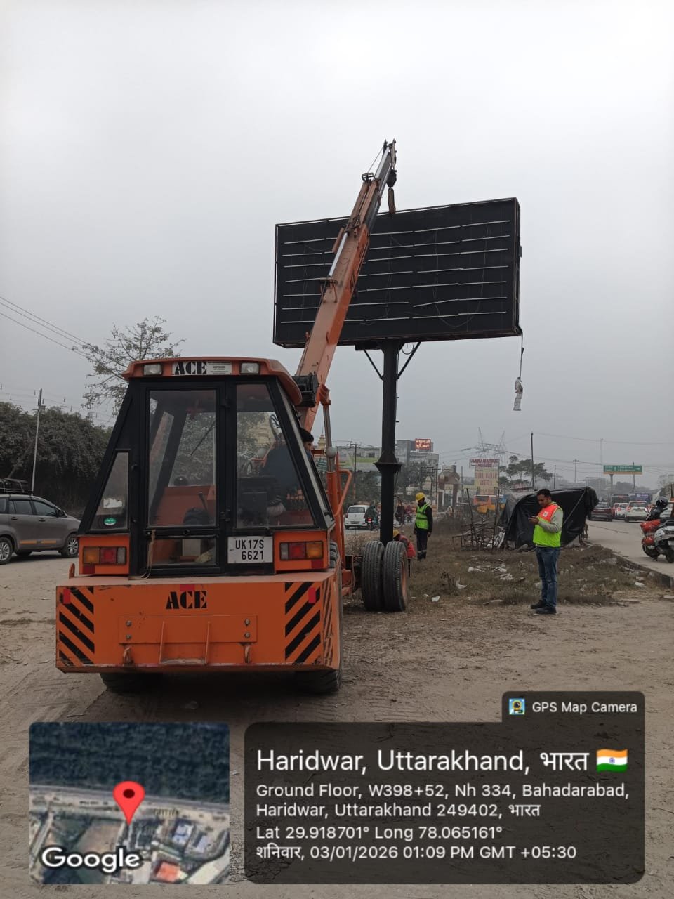 अधिशासी अभियंता एनएचएआई अतुल शर्मा ने अवगत कराया है कि जिलाधिकारी के निर्देशों के अनुपालन में राष्ट्रीय राजमार्ग संख्या 334 के किनारों से एवं रानीपुर झाल से बहादराबाद बाईपास क्षेत्रांतर्गत अवैध रूप एवं बिना अनुमति के लगाए गए बड़े बड़े यूनीपोल एवं होर्डिंग को राष्ट्रीय राजमार्ग प्राधिकरण द्वारा अधिकृत एजेंसी की टीम द्वारा हटाया जा रहा है। उन्होंने यह भी अवगत कराया है कि राष्ट्रीय राजमार्ग के किनारे बनाए गए खोखे, झुगी झोपड़ी को भी हटाया जा रहा है।