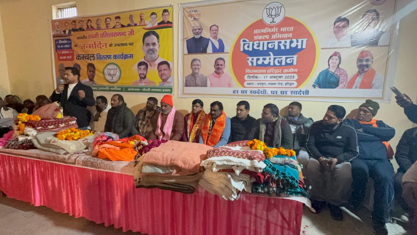 आज ग्राम धनपुरा में पूर्व कैबिनेट मंत्री स्वामी यतीश्वरानंद जी के जन्मदिन के उपलक्ष में कम्बल वितरण कार्यक्रम संपन्न हुआ l कंबल वितरण कार्यक्रम के अवसर पर स्वामी जी ने कहा कि नर सेवा नारायण सेवा