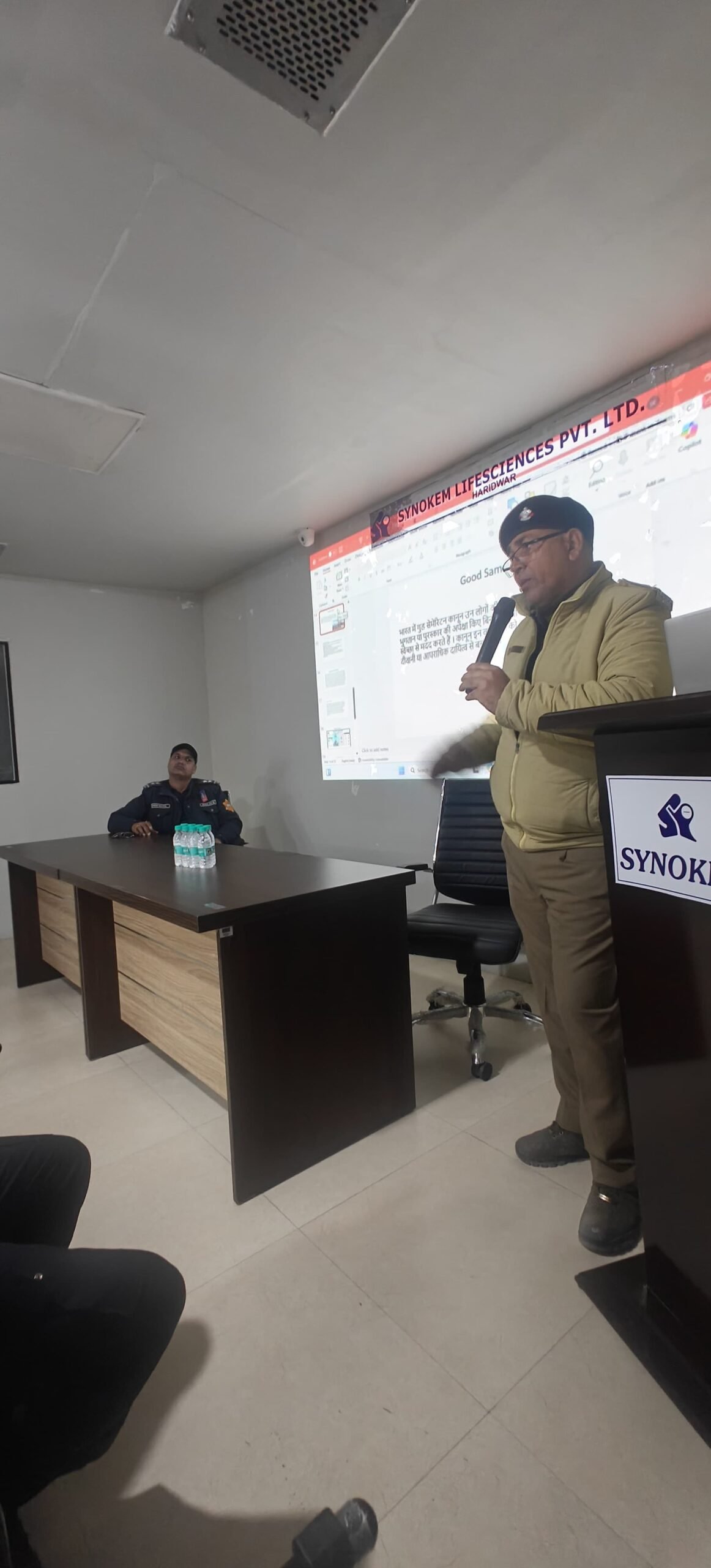 कार्यक्रम के दौरान SI (CPU) पवन नौटियाल एवं ADT SI प्रदीप कुमार सिंह द्वारा Synokem Lifesciences Pvt. Ltd. (Near Genus Plant) के अधिकारियों एवं कर्मचारियों को यातायात नियमों से संबंधित महत्वपूर्ण एवं उपयोगी जानकारी प्रदान की गई।
